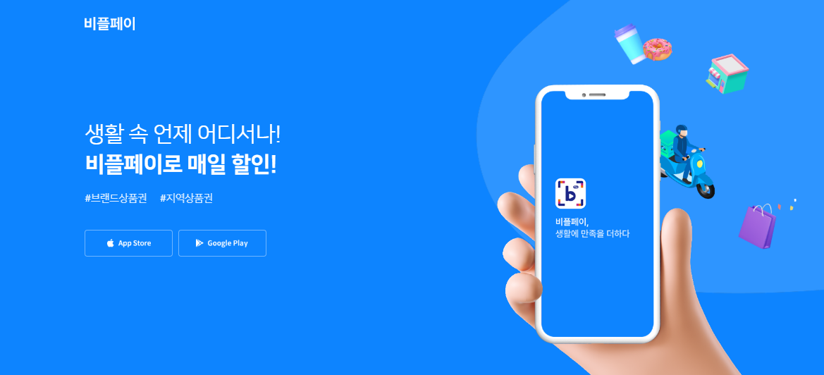 상품권은 현금처럼 바로 지급되지 않고, 모바일 앱 비플페이를 통해 등록 후 사용해야 합니다.