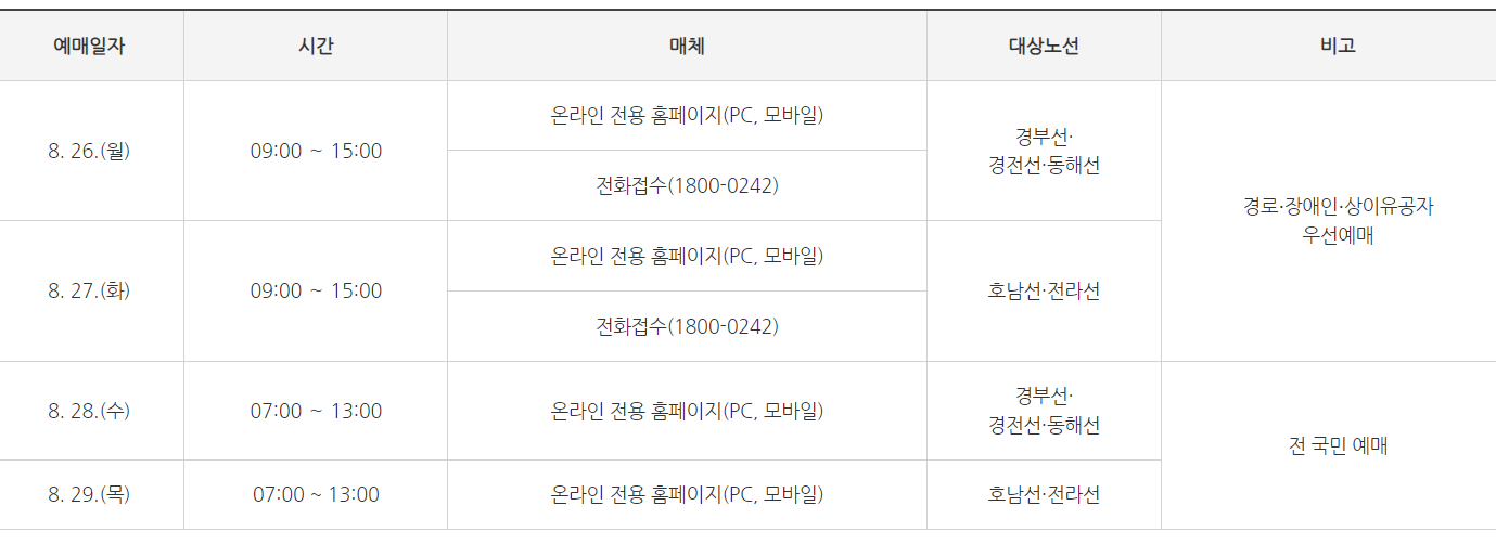 | 2024년 KTX 추석 기차표 예매일정 및 예매방법 결제기간 (0) | 2024.08.15 |