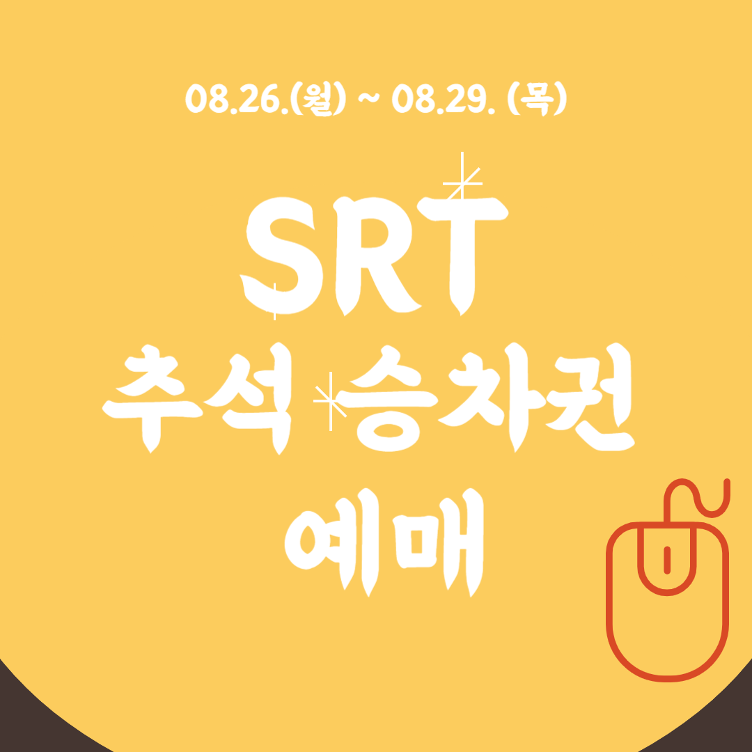 SRT 추석 승차권 예매가 08.26.(월) ~ 08.029. (목) 진행됩니다.