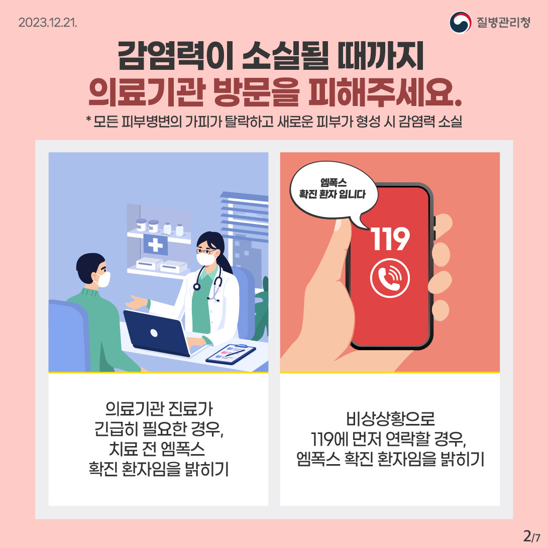 해외여행이 잦은 우리나라도 감염환자가 발생할 수 있는 가능성이 높으므로 증상이 있을 시에는 반드시 의료진의 진료를 받도록 합니다.