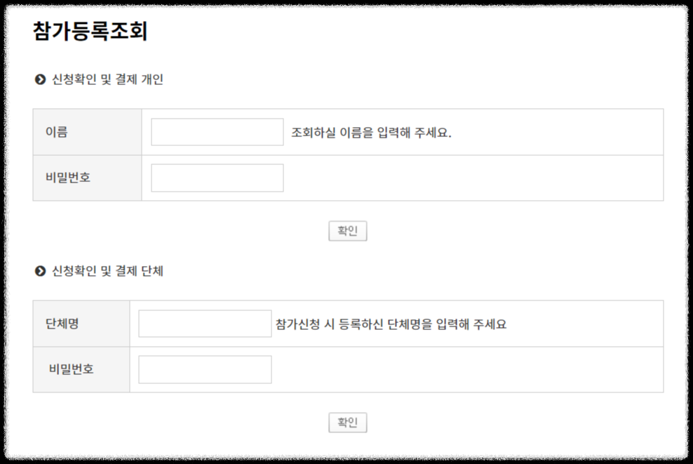 참가등록이 잘 됐는지 확인하고 싶으시면 등록조회를 해보세요