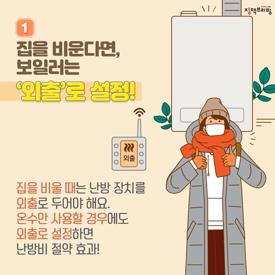 이와 함께, 난방 기구를 사용하지 않을 때는 '외출 모드'를 설정하여 불필요한 에너지 소비를 막을 수 있습니다.