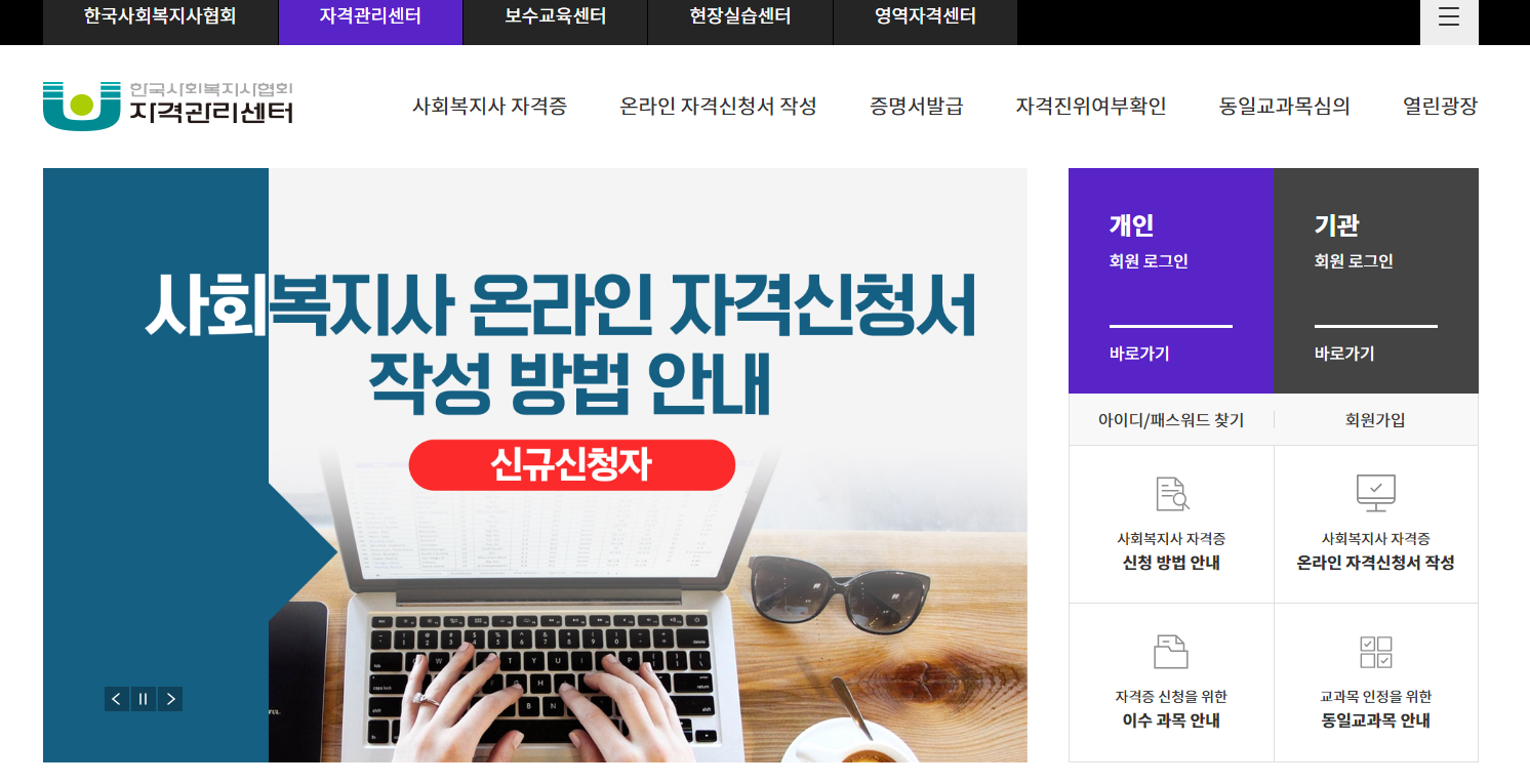 사회복지사 2급은 일정 과목의 수업을 통해 학점을 이수하고 현장실습을 완료하면 무시험으로 자격증이 발급됩니다.